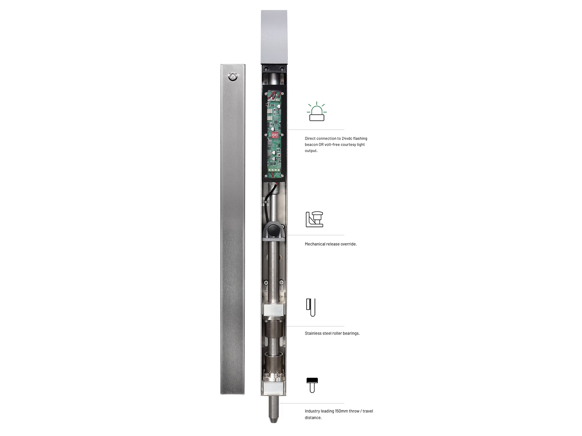 Featuring a 150mm stainless steel locking bolt, the Tomalok delovers strong vertical locking, making it particularly effective for swing or sliding gates. The unit is manufactured with a robust stainless steel housing and is available in a choice of finishes, allowing it to blend seamlessly with modern gate designs.